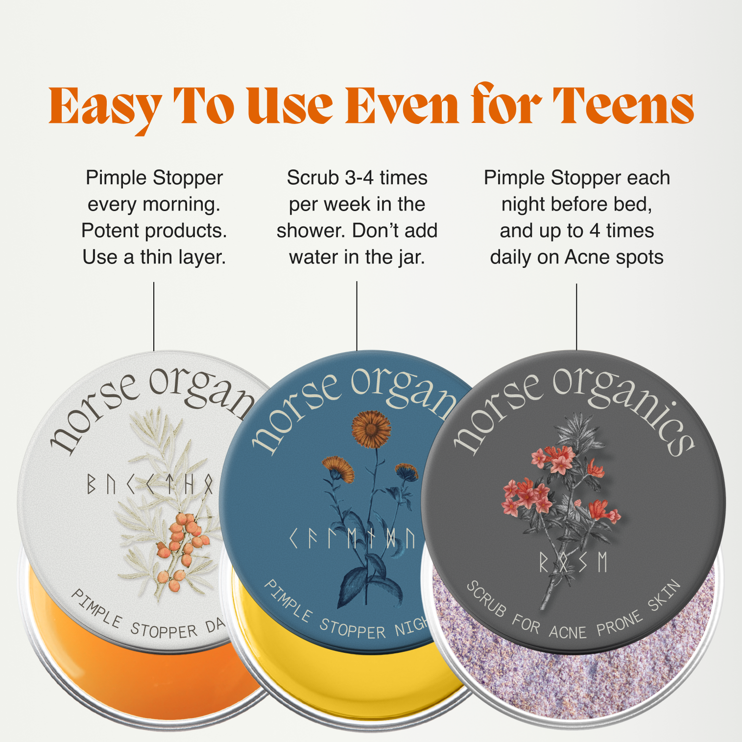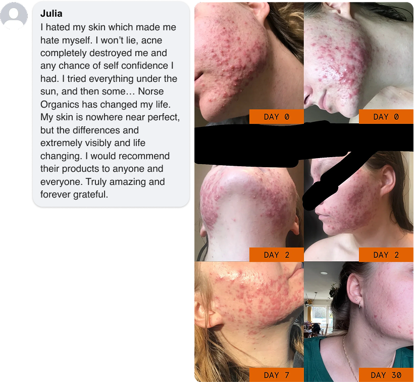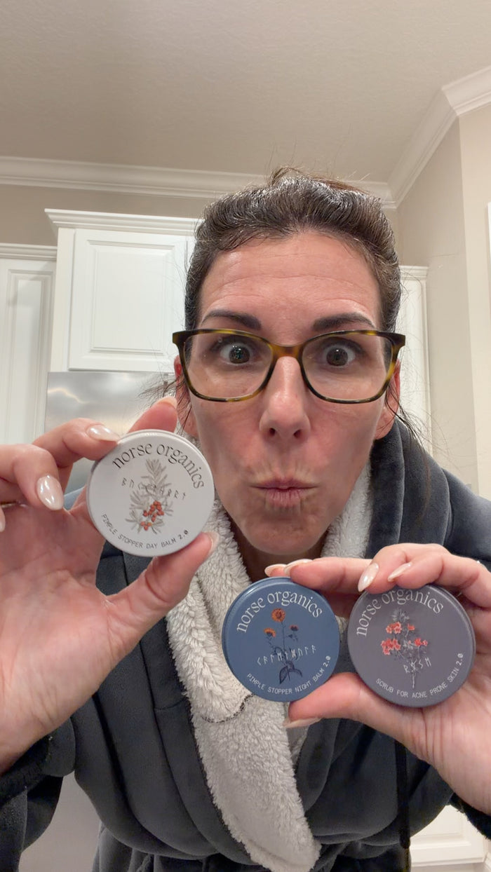 Norse Organics is what we use now. Wild Arctic Botanicals, real, raw ingredients grown miles from pollution in the freezing North. They actually heal acne instead of just burning the surface and calling it a day. Clean, effective, and I feel genuinely good about it!! 💛