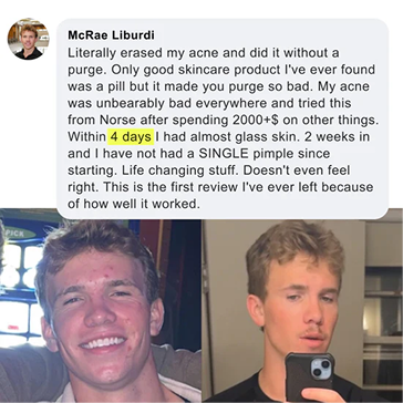 "I spent years battling acne with harsh prescriptions that only burned my skin and crushed my confidence. Refusing to give up, I searched for a better way. That journey led me to discover the power of wild Arctic plants. I decided to build Norse Organics to share that discovery. A solution that is finally safe and effective.