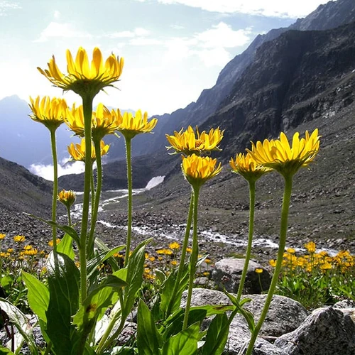 The plants need to bloom fast because of short summer. So they push all the nutrition to the leaves at the same time.